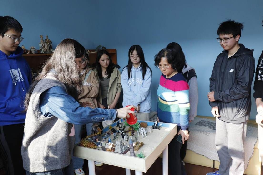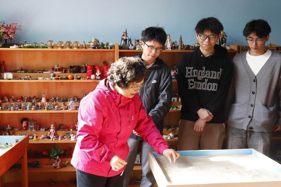 随后,按照逆时针让每位同学选择摆放任意一个沙具于沙箱中。