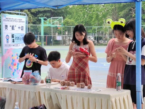 活动期间,两校区同学积极参与,气氛热烈。在犀浦校区,交通运输与物流学院的“手韵心声,语润心田”手语游戏、外国语学院的“英语填词”游戏、利兹学院的“送你一朵扭扭花”活动、智慧城市与交通学院举办的“涂个开心”石膏小熊手绘DIY活动、建筑学院的“宁心漆韵 扇舒心灵”绘扇活动等人气满满。