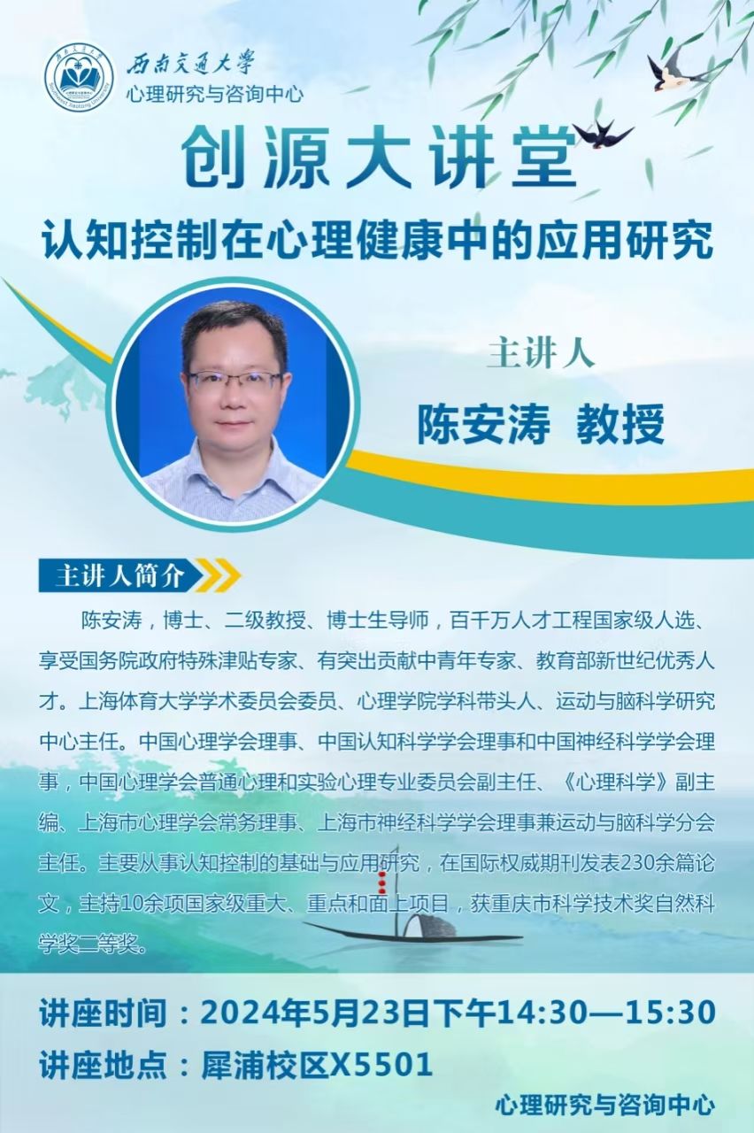 【创源大讲堂】认知控制在心理健康中的应用研究