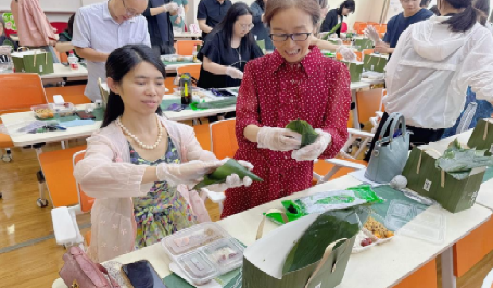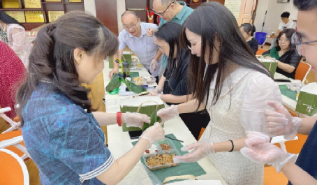 包粽子环节中,工会提前为每位老师准备了充足的粽叶、馅料、工具等材料,在孙辰立老师的示范下,老师们纷纷开始展现自己的手艺,现场一片欢声笑语,热闹非凡。大家边包粽子边交流心得,不仅增进了彼此之间的了解,也体验到了端午节传统文化的魅力。