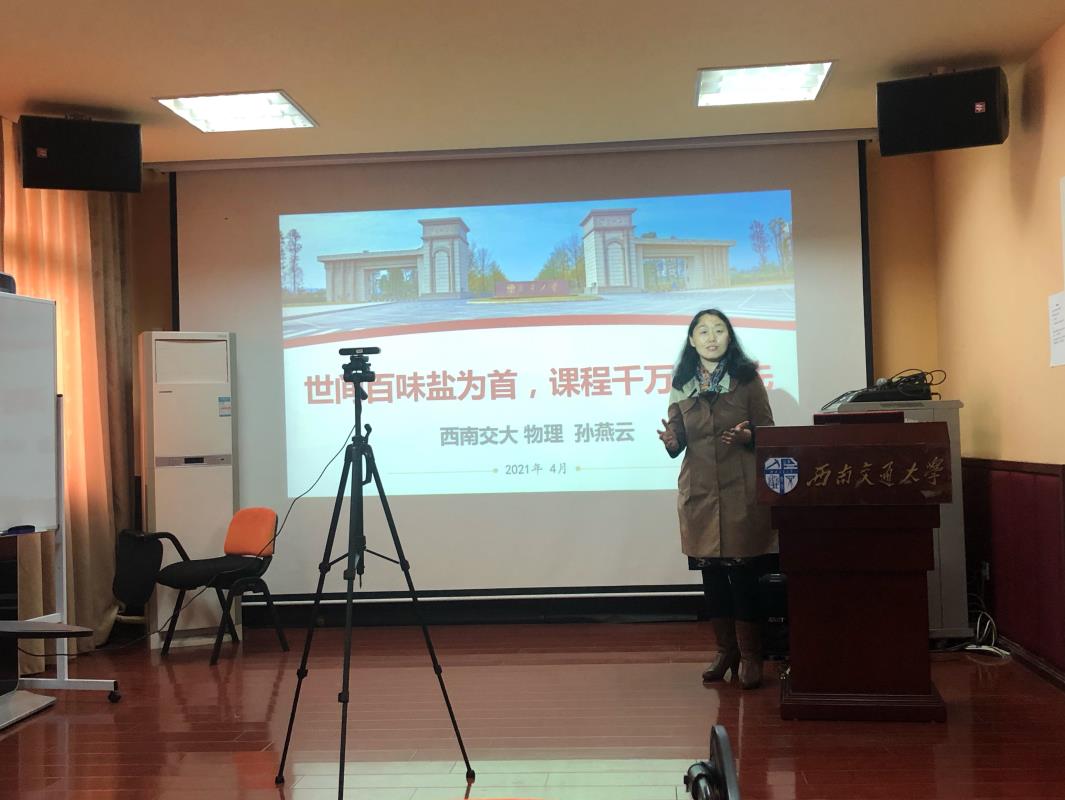 四川省级课程思政示范课程负责人孙燕云副教授主要介绍了课程思政的含义以及课程的建设思路,通过四个详实的教学案例,生动地展现了在课程教学中如何融合思政教育元素,润物无声地浸润价值。此外,孙老师还分享了团队的课程建设过程中的一些经验。