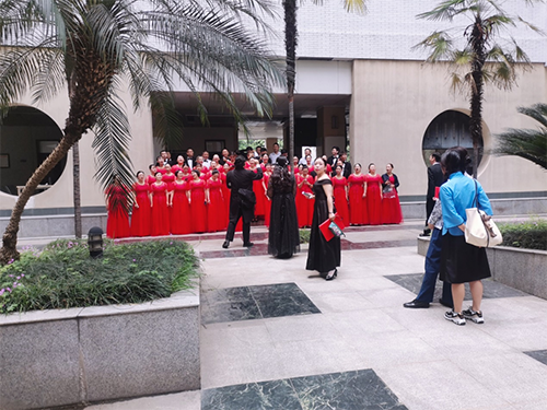 师生齐声唱响红歌,向观众展现了精彩亮眼的表演。