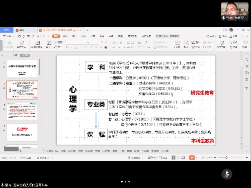 然后,雷鸣副主任就心理学学科建设和考研情况为家长们进行讲解。他谈到,心理学是战略基础性学科,基于现阶段各大高校对心理学学子的出口以及社会的需求,心理学专业毕业生的选择是很广阔的,但重点在于怎样选好自己未来的方向。雷主任还深入剖析了现阶段考研形势:推免生大幅增加、科研助理的加入、高初试分不等于高复试分等,让家长们进一步帮助孩子明晰“二战真的考虑好了吗”。同时,雷主任希望家长能引导学生将目标放长远,把鸡蛋放在不同的篮子里。