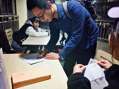 在11月14、15日晚上7点,活动参与者们都纷纷前往指定地点投递信件。经过这次活动他们的烦恼也许就能通过粉粹箱被粉碎干净,或通过研究生学长学姐们的回信得到解决了。