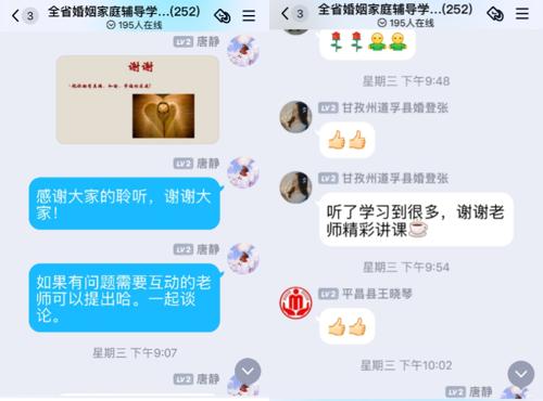 在成都太阳花社会工作服务中心承办的婚姻家庭辅导项目线上微课在全省婚姻家庭辅导交流群中展开。此次微课的主题是“家庭文化建设”,主讲老师为科普基地的唐静老师,在线学习有195人。