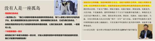 家庭文化不仅包括家庭的物质文化层面也体现在精神文化方面,尤其是家庭成员的行为规范和价值观。唐静老师从家庭成员的关系、家庭氛围的营造、家庭教育等八个方面阐述了家庭文化的内容,并重点分析了中国家庭文化的特征及中国家庭的行为模式,使大家能以发展的眼光来审视传统的家文化。