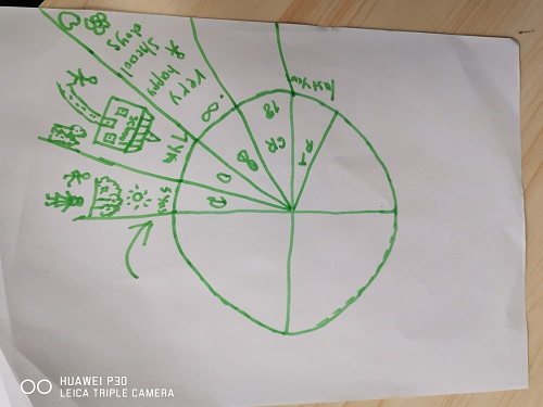 然后通过音乐绘画的方式,留学生们回顾并分享了个人的成长经历,进一步明确了留学的目的和新学期学习目标。