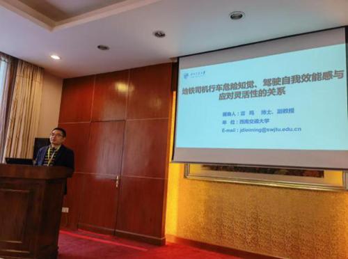 雷鸣副教授主持分论坛会议,雷鸣、冯果两位老师分别以“地铁司机行车危险知觉、驾驶自我效能感与应对灵活性的关系”、“基于多数据源的高铁调度员工作负荷分析与测评”为题,在分论坛和与会代表进行交流、研讨。两位老师的报告引发了与会代表的极大兴趣。