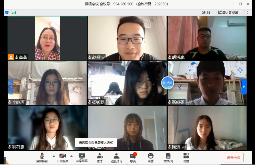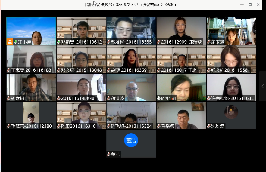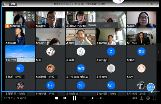 中午13时,本次校抽样答辩圆满结束。评委老师和答辩同学进行网上合影留念。受答辩组长委托,雷鸣老师就校级抽样答辩进行总结发言,感谢了今天参加答辩学生及其指导老师近7个多月的努力和付出,给大家展现出了符合质量要求的毕业论文,达到了学校提出的要求。同时,对接下来的院级面上答辩提出三点具体要求:一是在答辩之前再完善毕业论文,增强研究的理论支撑,重点是完善问题提出和结果解释部分;二是在答辩之前,务必要完成各项检查工作,准备查重报告、外文翻译、指导记要等各项材料;三是重视答辩环节,抓住重点和精华。答辩要能放能缩,善于总结论文的精华和创新之处。