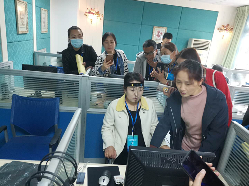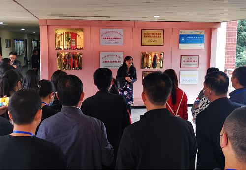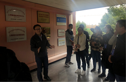 参观学习。心理研究与咨询中心直属党支部书记刘咏梅和实验室相关负责老师接待了他们。