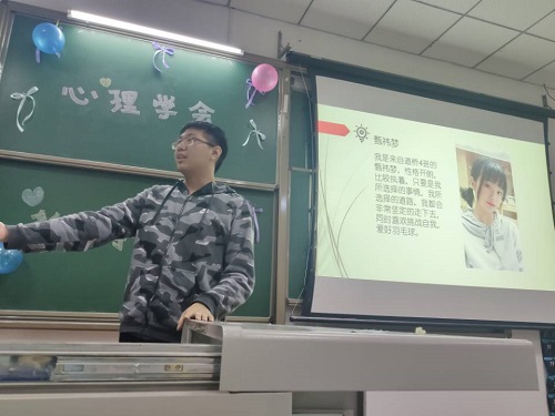 接着,大学生心理学会副会长刘慧辉介绍心理学会。学会成立于2000年,致力于服务学校的心理健康活动,服务于老师的教育教学,服务于同学心理健康知识的传播与普及,更起着联络与沟通的作用。心理学会设有学术部、办公室、宣传部3个部门。今年共有四十五名新干事加入大学生心理学会,连同原有的干部同学,学会共有五十五名学生和三名指导老师。相信在老师的指导和同学们的共同努力下,3d色情