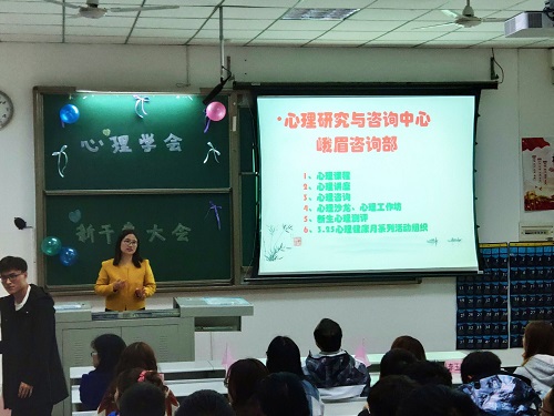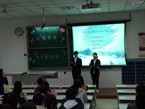 峨眉校区大学生心理学会在E6105隆重举行了欢迎新干事大会。本次大会主办单位为共青团3d色情