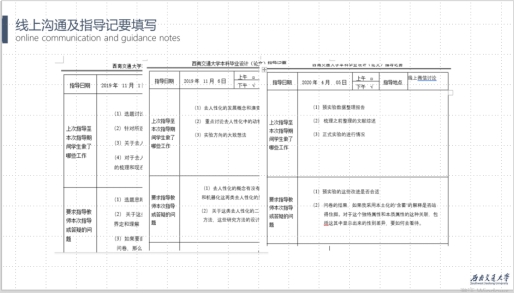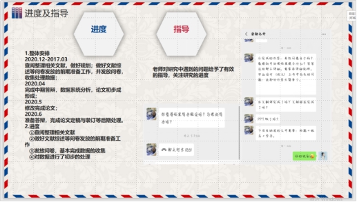 在此次答辩中,重视论文思政,结合当前疫情,鼓励学生结合选题提出更有效的心理健康服务建议,弘扬社会主义核心价值观。注重师生交流、指导环节的检查,不仅要求师生填写毕业论文指导记要,还要求展示师生的QQ、微信聊天记录。明确毕业论文中期检查的质量要求,要求实验类论文,完成实验程序编制,并做完预实验,调查类论文,基本完成数据收集工作,并整理出初步的结果。明确师生中期检查的纪律要求,增强毕业论文工作的严肃性。