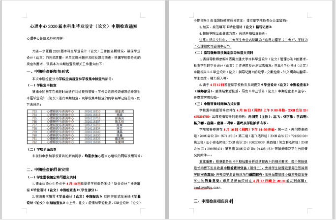 图1 应用心理学专业2020届本科生毕业论文中期检查安排