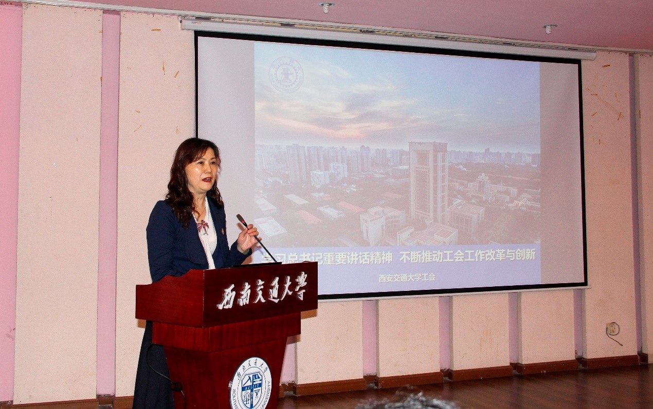 工会黄祥主席作《以心灵驿站为依托,构建教职工心理服务体系》,西安交大化工学院工会邓建强主席作《工会组织做好服务非在编职工工作的思考》,北京交大电气学院工会于金凤主席作《工会让生活更美好》的主题发言。