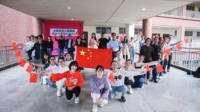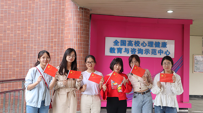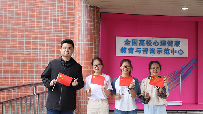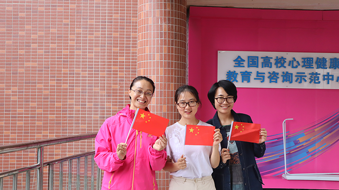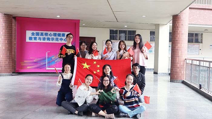 9月26日下午,为庆祝新中国成立70周年,3d色情 筹划了“青春告白祖国,我与国旗合影”主题活动。中心师生代表们齐聚五教,站成心形队列,高举五星红旗,表达对祖国的祝福。