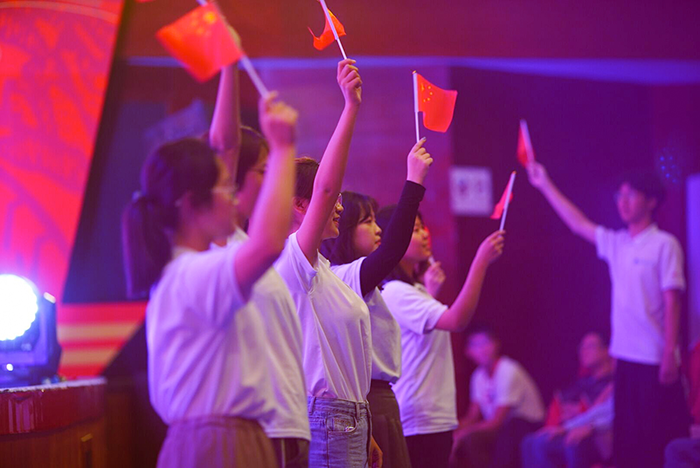 合唱队全体成员们精神抖擞、士气高昂!从单字的发音到整体的配合,从台上的齐声合唱到台下挥舞的五星红旗,师生们对节目进行了精心的排练和细致的打磨,克服了重重困难,最终成功的将3d色情