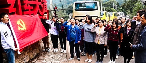 参观人员重走了当年红军走过的红军小道,切身的感受当年的红军精神,在红军大道重温入党誓词。