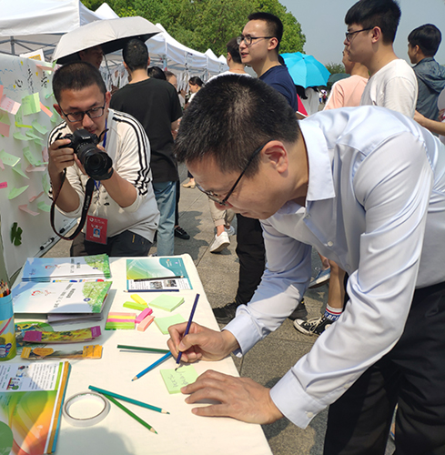 师生热情的工作态度表示肯定,并在心情墙上留下了对于同学们的祝福:祝大家每天好心情!
