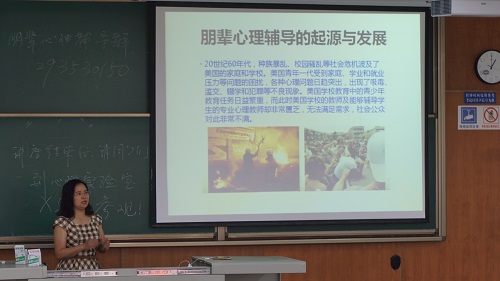 在培训中,汪老师首先阐述了朋辈心理辅导的概念,朋辈心理辅导即是年龄相当者对周围的同学朋友给予心理开导、安慰与支持的一种心理辅导,它具备着互助性、友情效应、时效性强、简便易行的特点。同时,朋辈心理辅导往往要求作为辅导员的同龄人应具备一些基础的知识储备与技能储备,但它也不会涉及深层心理问题。