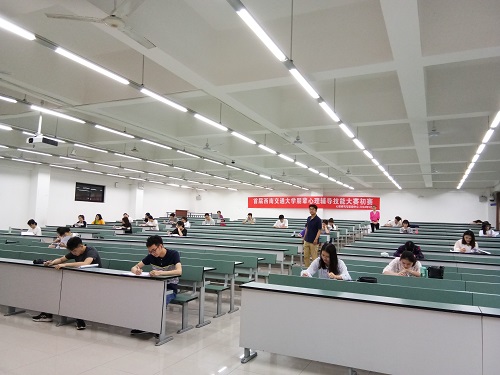 初赛采用笔试的形式,主要考察同学们掌握有关心理学以及心理健康方面的知识情况。比赛现场秩序井然,组织者认真负责;同学们认真作答,没有丝毫的懈怠,希望发挥出自己最好的水平。中午12点,初赛圆满结束。