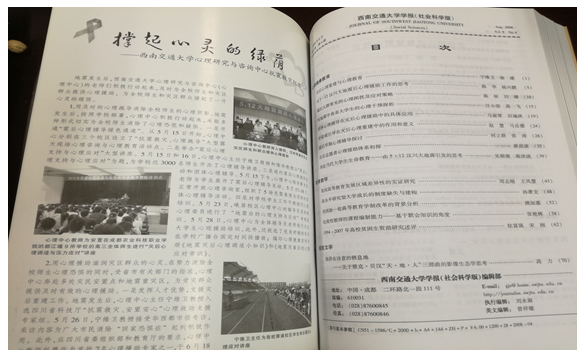 学报(社科版)合作,发挥学报“心理健康教育”栏目(全国高校社科期刊特色栏目)的学术影响力,组织专家发表灾后心理援助相关论文30余篇。