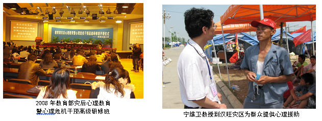 宁维卫教授团队发挥学科优势,以问题和民众需求为导向,积极开展灾难心理学研究。承担国家“863计划”地震应急项目,出版了本土化《灾难心理学——灾区学校青少年心理教育与危机干预》、《震后心理健康教育理论与实践》、《震后压力应对与心灵重建》及《心理健康教育及灾后心理重建论集》等多本专著,研究成果运用于灾后心理援助与心理重建实践,取得了良好的效果,得到了社会的高度评价,并获得四川省哲学社会科学优秀成果二等奖和三等奖多项(政府奖)。与3d色情