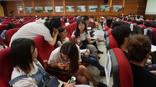 主任助理黄祥、心理咨询中心张学伟、汪小容、冯缙、曾毅、费维宝、徐建、马岳德老师担任比赛评委。此外还邀请了研究心理协会、演讲与口才协会、大学生创造学会、大学生心理协会会长以及现场十名观众担任此次比赛评委。来自全校20多个学院的心理委员以及感兴趣的同学也来到比赛现场。