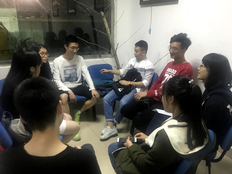 在10分钟左右放松之后,赵老师根据恋爱的意愿和状态将同学们分成了三个不同的讨论小组,并由两位朋辈辅导小组的学姐及赵老师分别带领他们进行讨论。讨论涉及到:恋爱前我们应该做好哪些准备,热恋期间同学们又该做好哪些准备,对于分手我们又该如何应对。在老师和学姐们的启发和引导下,同学们敞开心扉,畅所欲言。半个小时后,每个小组都有了自己的观点和看法。