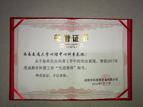 成都市科普教育基地联合会对表现突出的科普基地及科普工作者进行了表彰。西南交大3d色情