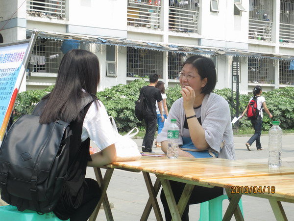 这次活动与前几次相比,在准备上更加充分,经验也更加丰富。用简单的六个字来描述这次活动再贴切不过了——“准备早,方式好”。“准备早”是说这次活动比以往活动准备更加早,这就为活动提供了更加充足的准备时间。“方式好”则是活动用了两个大展板,一个大条幅,吸引了大家的眼球,老师在现场可以立刻和同学交流,方便简单,效果十分理想。此次活动虽然只有短短的一个半小时,但却意义非凡。