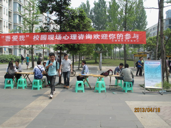 举办的“善爱我”校园现场心理咨询活动于在犀浦校区二食堂门口举行。本次活动采用现场心理咨询的方式,目的是为了让同学们了解心理咨询,让学生们听到“心理咨询”的声音,帮助同学们提高心理健康意识和心理健康水平。