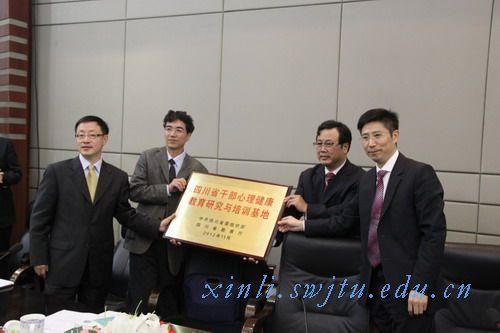 仪式第三项由戴允康副部长、朱世宏书记为基地授牌,这标志着四川省干部心理健康教育研究与培训基地在我校正式落成。