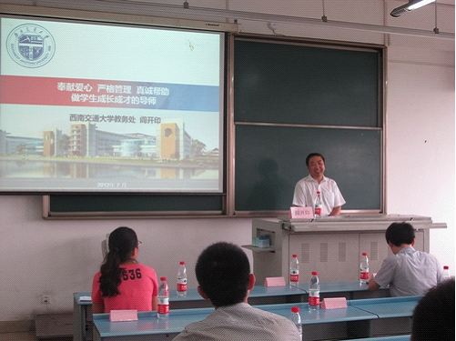教务处阎开印处长向参培辅导员讲解了当前我国高等教育面对的形势与问题,国家支持高等教育发展的重大政策,并针对性地介绍了我校相关的应对措施。阎开印处长结合本科教学工作,阐述了辅导员的职责与重要性,并对本科教学中一些重要规定进行了解读。阎处长强调,辅导员不仅是管理者,更是学生的人生导师。要成为一名合格的辅导员,就要在工作中充分了解学生特点、全面了解教育教学过程、充分指导学生,切实做到“奉献爱心、严格管理、真诚帮助”。
