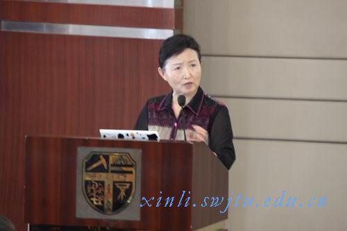 陈丽教授向大家介绍了由我校学生设计的“心理健康教育月”的logo。logo大胆的创新、新颖的构思、深刻的寓意,赢得了全场的热烈掌声。