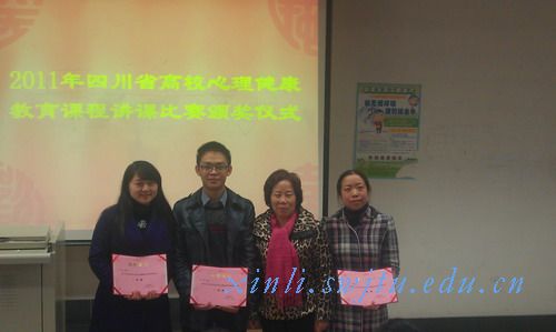 教师高飞、中国民航飞行学院教师孟豫、四川幼儿师范高等专科学校教师夏巍获得一等奖。此外,有6名教师荣获二等奖,9名教师荣获三等奖。四川省教育厅巡视员周光富、宣传思想工作处处长曾中良、我校党委副书记朱健梅教授共同出席了颁奖仪式,并为获奖教师颁了奖。
