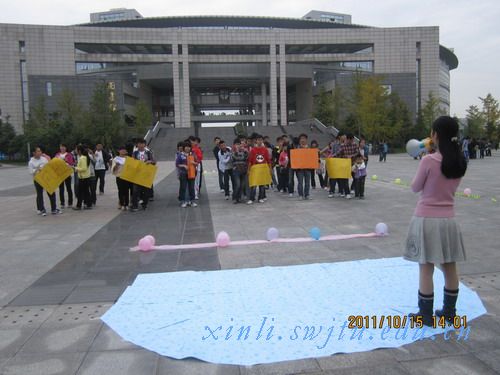 2011年10月15日下午2时,由校团委、社团联合会主办,大学生心理学会承办的第九届大学生心理学会素质拓展活动在图书馆前广场上拉开帷幕。该活动以“沟通你我”为主题,旨在促进心理学会各部门成员的沟通与交流,增强同学们的团结协作精神。