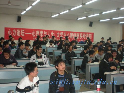 讲座开始之前本站记者特别采访了本次讲座的承办单位-----大学生心理学会会长杨烨。他介绍,根据前几场的讲座情况,这场讲座的听众估计也会在150人左右,这些听众有的是心学内部人员,更多的还是心学外部的广大心理爱好者。此时,蒋老师也提前到场了,本站记者也有幸采访了他。当被问及本次讲座的意义时,蒋老师简要通俗地答道:“既然大学生都憧憬爱情,也适合恋爱,我们作为心理学老师就有责任给予一定的指导”。
