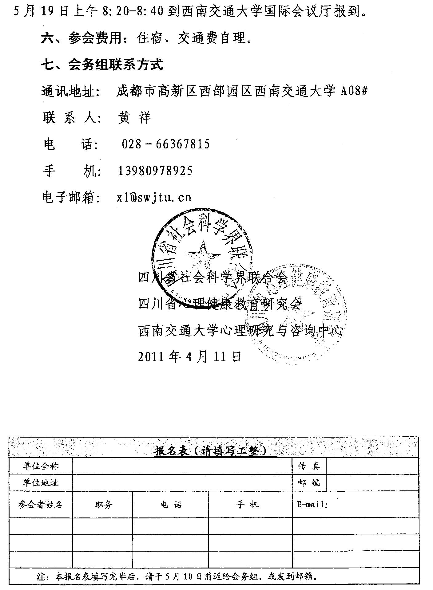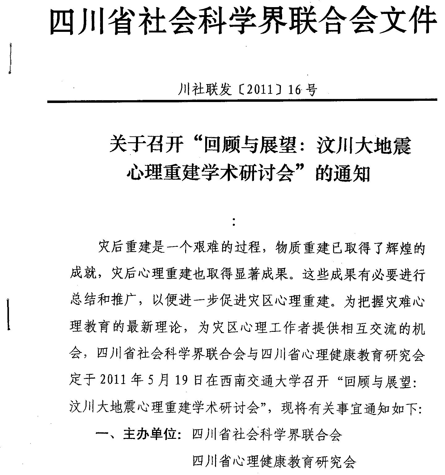 关于召开“回顾与展望:汶川大地震心理重建学术研讨会”的通知