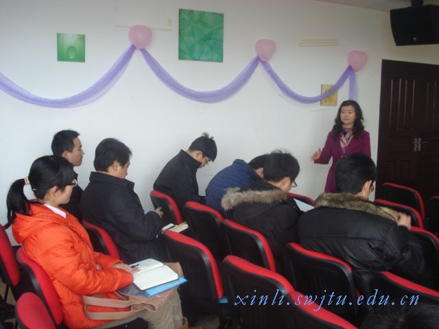 其次,蒋洪波老师对新生的总体测评结果做了汇报。他说,从整体上看,我校新生总体心理健康状况良好,大多数都能适应学校生活。然后他针对社交退缩、抑郁、焦虑、愤怒、性心理障碍、依赖等各种不同的心理问题作了详细的阐述,并与老师们进行了探讨。他说,心理健康教育工作是一项细致的工作,需针对不同的学生的具体问题采取不同方法。老师们要尽可能多地去了解学生,多与学生交流,才能尽早发现问题,帮助他们解决问题。