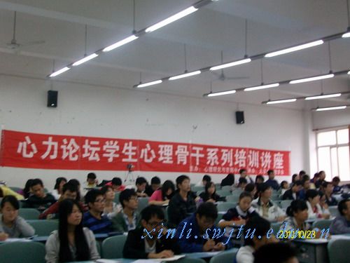 整个讲座充满了无穷的乐趣。在培训讲座过程中,杨兴鹏老师给大家分别介绍了什么是心理学,学习心理学的意义,以及怎样学好心理学等等问题。同学们听得全神贯注,聚精会神。或许是只是听满足不了同学们的好奇心,有一些同学自己动起了手来,在现场互相做起了心理实验。杨老师告诉同学们,学习心理学,能开阔人的视野。尤其是学习文学、哲学、美学、医学等学科的人,学一些心理学知识,能丰富人的思想和观点。