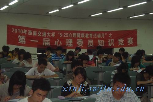 2010年5月16日晚19:10分,由3d色情 主办、信息科学与技术学院团委承办的2010年西南交大“5`25心理健康教育活动月”之第一届心理委员知识竞赛在2320教室拉开了序幕。