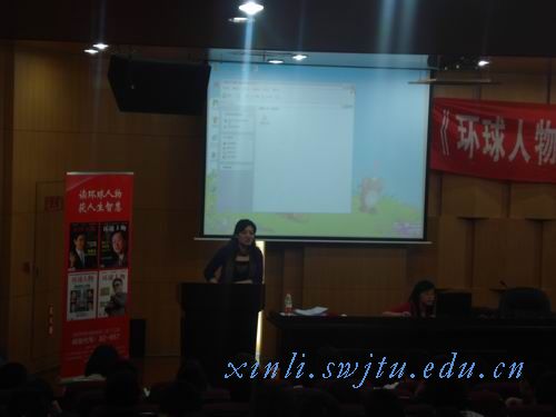刘畅首先主要就当代大学生求学及求职时普遍遇到的问题,向大家讲述了自己的亲身经历和深刻体验。她表示,不论是在求学还是求职过程中,平衡健康的心态都是尤为重要的。面对学校及社会中的种种不公正,只有努力提高自己,不断地定位自己,思考自己,开发自身潜能,才能有机会去向别人证明自己。当谈及自己初到《环球人物》工作组的经历时,刘畅笑着说自己在那里知道了要“先学会做人,后学会做事”,并告诫同学们细节决定成败,切莫因为一件自己毫不在意的小事而失去机会。另外,要敢于尝试自己不敢做的事,自信的看待人生。