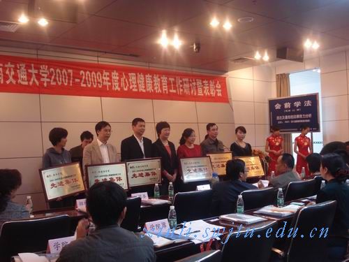 2007—2009年度心理健康教育工作先进个人称号,顾利亚书记和朱健梅副书记共同为获奖者颁奖。