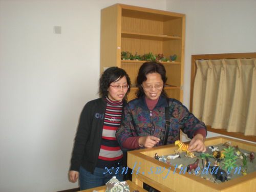 在沙盘实验室,朱老师对沙盘饶有情趣,对这个实验室的布局和设置赞不绝口,感觉很温馨,身心能够尽快放松下来,另外布置的每个细节上都体现了人性化。