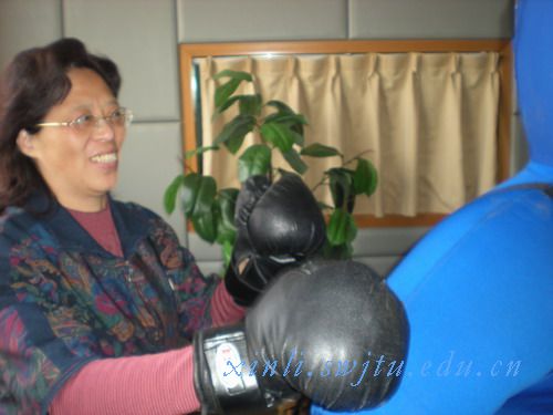 到了情绪宣泄与调节室,两位老师对情绪宣泄的道具饶有兴趣,徐建老师对心理发泄道具及原理作了讲解,这个实验室是我国第一家把发泄原理应用于客观道具的实验室,在心理应用创新性方面具有标本意义。