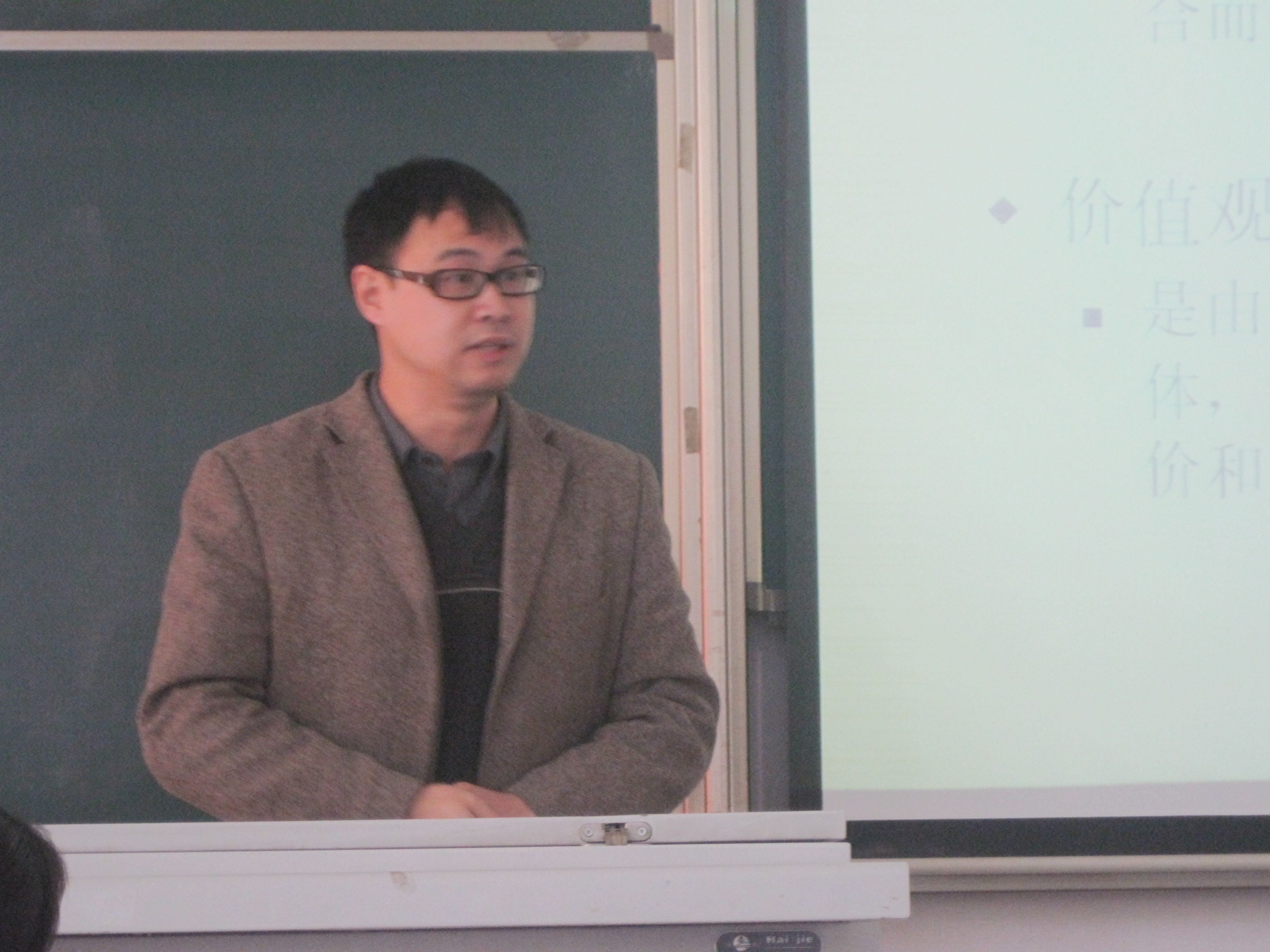 蒋洪波老师的课题是“价值观”。蒋老师首先带领同学们回顾了上节课所讲内容,然后以孔子对颜回的教导引出课题,提出了价值观的定义,并通过具体事例对定义中的关键词进行了详细解释,接着蒋老师让同学们欣赏著名哲理诗“致橡树”,讨论什么样的爱情才是真正有价值的爱情,让同学们对理论性较强的价值观有了深刻的了解。最后,蒋老师让同学们预习下节知识,结束了讲课。
