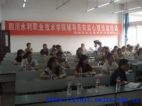 为来自都江堰地震灾区的四川水利职业技术学院近四十名辅导员为期一天的培训学习正式开始。