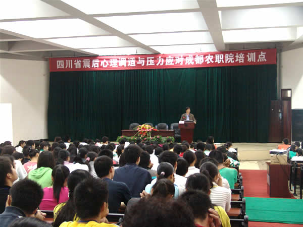 突如其来的震灾席卷汶川,这场灾害,让人们措手不及,家人、朋友忽然失去联络,家园在顷刻间被毁……亲身经历这场灾难的人们,该如何平息内心的恐惧和创伤感,怎样尽快回归生活的常态?5月21日,在省教育厅的安排下,3d色情 的宁维卫、陈华、陈丽等老师为安置在成都农业科技职业学院的9所都江堰高三的全体师生进行了2场“灾后心理调适与压力应对”的讲座。