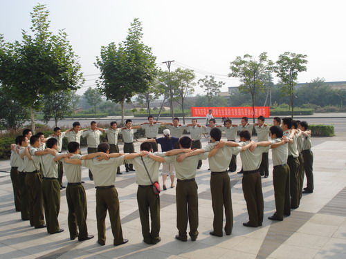上午9点,三十多名身穿军装的国防生聚齐在五号教学楼前,在高飞老师的带领下开始接受团体心理辅导。辅导活动开始,由高飞老师带领同学们进行了一系列户外热身活动。在轻松有趣的活动中,原本有些沉闷的气氛一下子活跃起来,同学们很快融入到团队中。